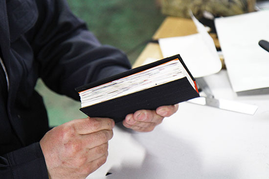 製本職人の上島松男さん、