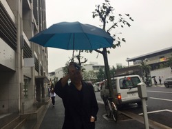 ご自慢のアウトドア傘を勧めながら