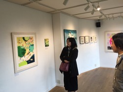 原画に感動するお客様。