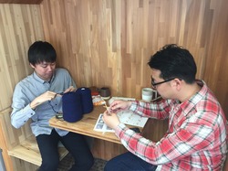 会社の小屋で編みはじめています。