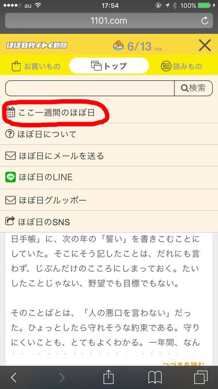 「ここ一週間のほぼ日」へ飛ぶリンクが