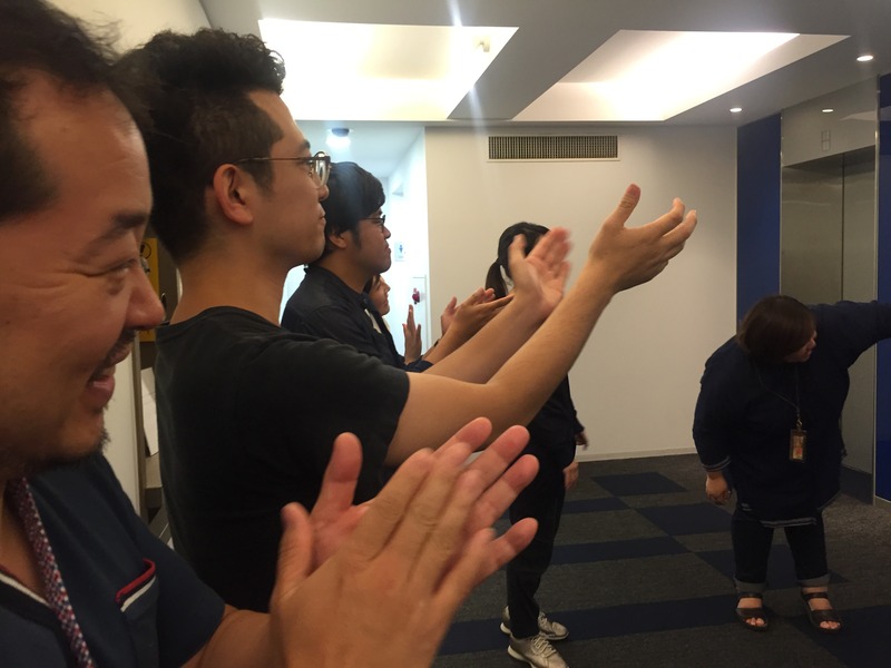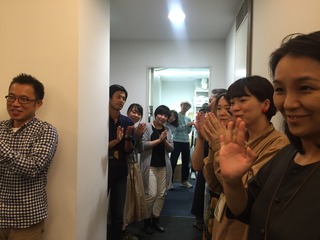 みんなでエレベーターまで見送ります。