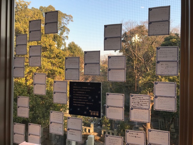 窓ぎわに貼り出されている