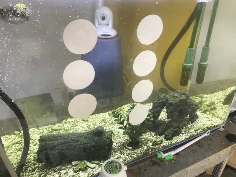 フグの水槽に到着して、