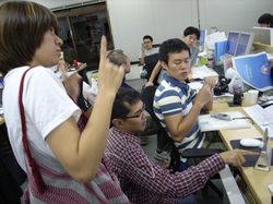 ハラマキについて打ち合わせ中。