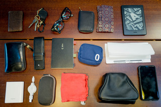 左上から、名刺入れ、鍵、メガネ、
