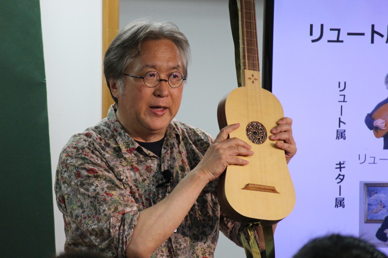 岡ノ谷さん愛蔵の弦楽器を次々と抱え、