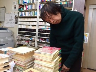 書棚から貴重な『坊っちゃん』の本を取り出して