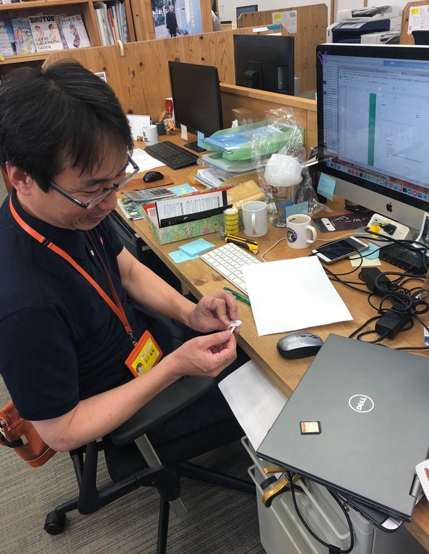その手にはSDカード。