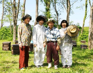 桜のはちみつを採取する様子は、