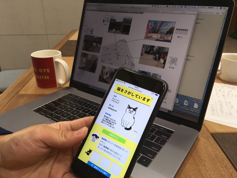 スマホを使って、住宅街で迷子になっている猫を