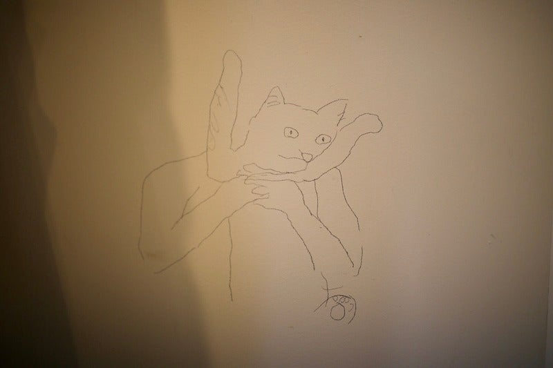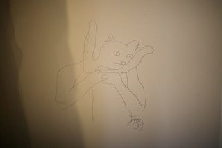 壁にえんぴつで