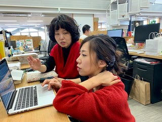 隣でプチ打ち合わせをしている