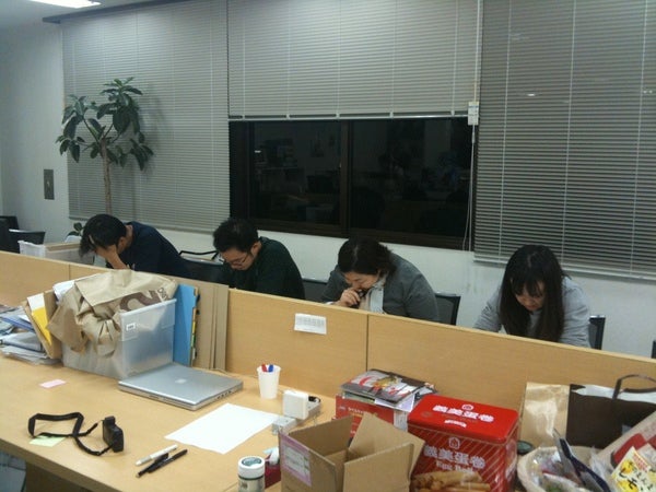 いかにもテストの最中っぽいひとたちが。