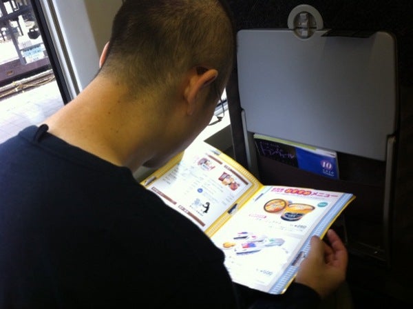 いきなり車内販売メニューを吟味中。