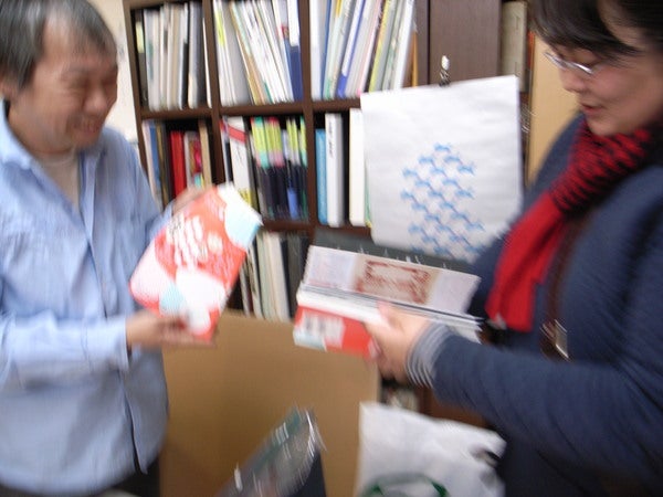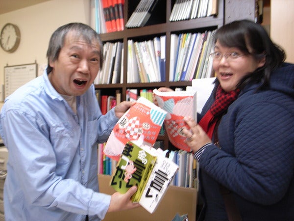 「あした発売の本をお持ちしました〜。」