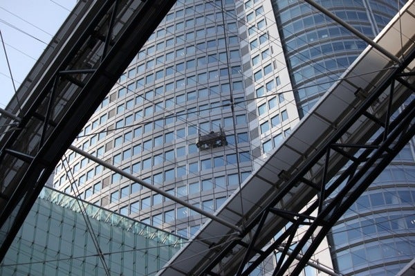 六本木ヒルズの窓拭きの写真。