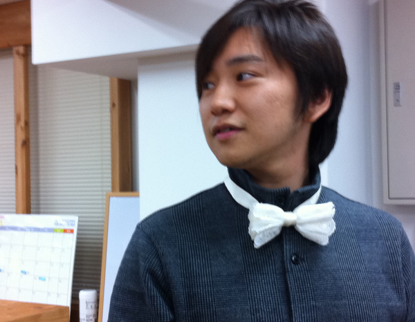 蝶ネクタイを見つけたニシダくんが、
