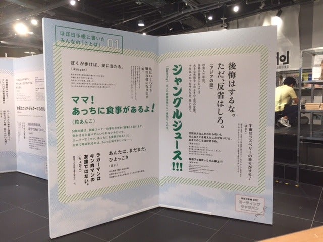 手帳の形をした壁に展示されています。