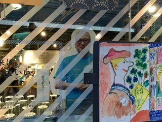 ウィンドウ越しの店長。