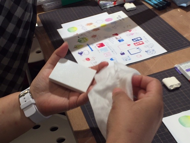 拭いてから、インクをペタペタ。