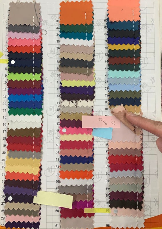 同じ色や素材でも、生地問屋さんによって