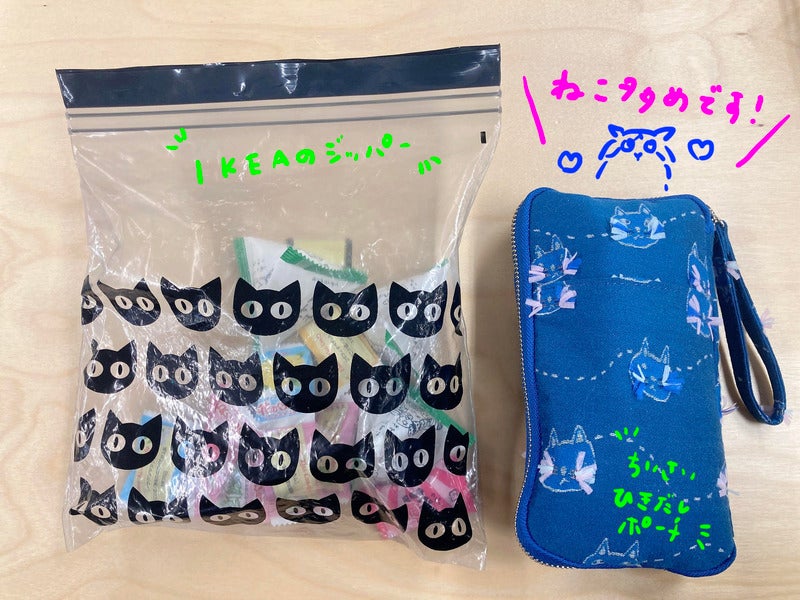 ねこのおかし袋とちいさいひきだしポーチ(ひげねこ)