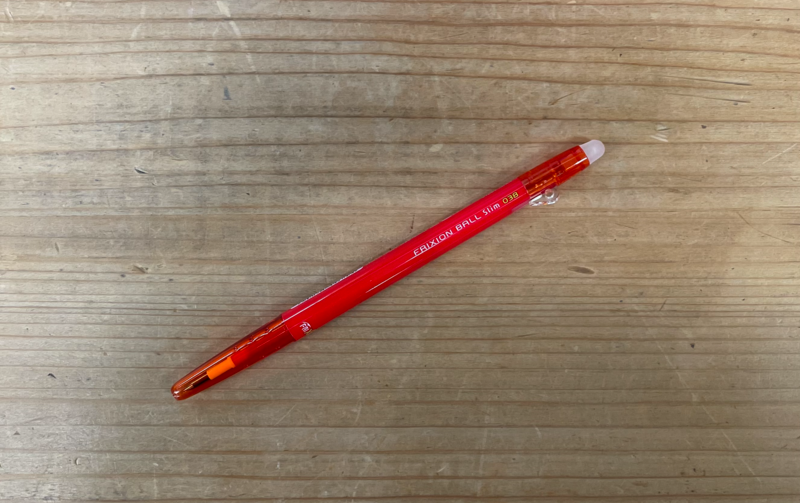 続いて、フリクションボールペン。赤色。