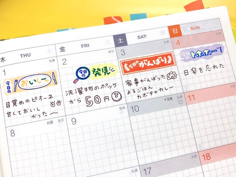 ▼手帳を書くヒントとなる、いろんなお題が出てきます