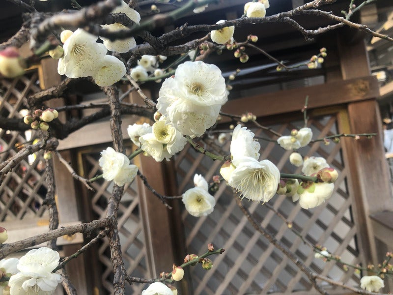 ▲湯島天神にて。梅の花が可憐に咲いておりました。