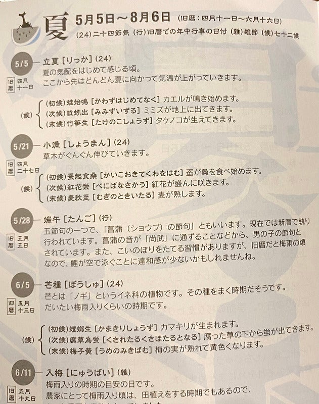「ことしの歳時記」が記載されていて