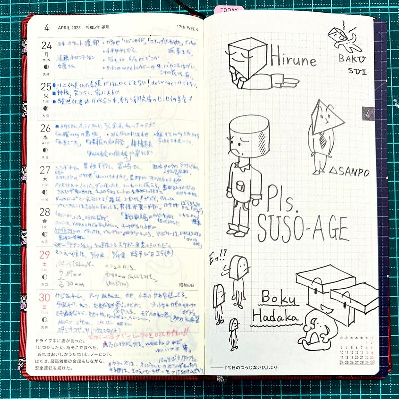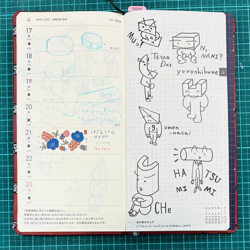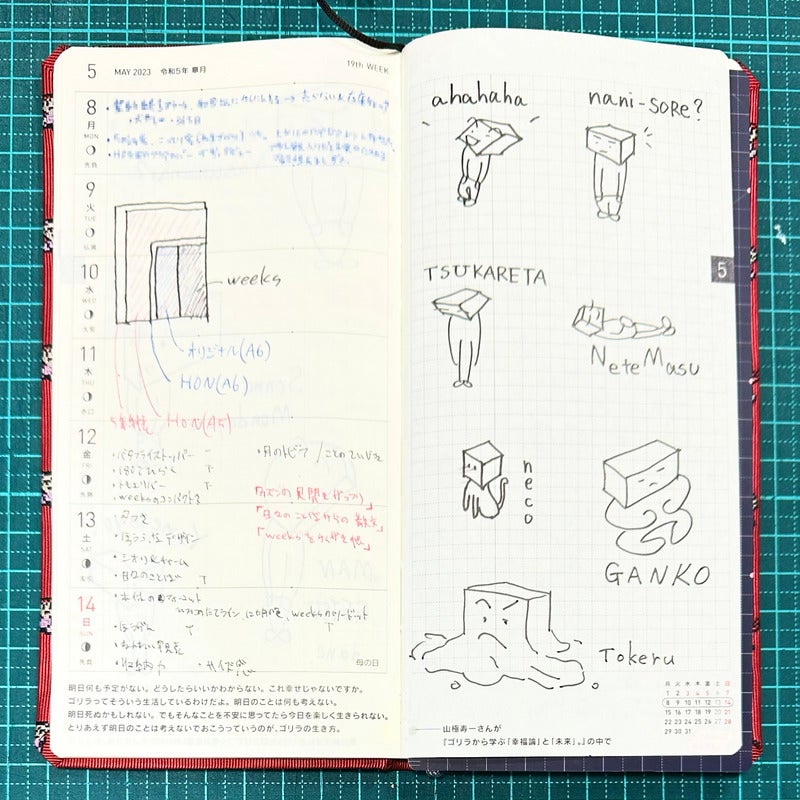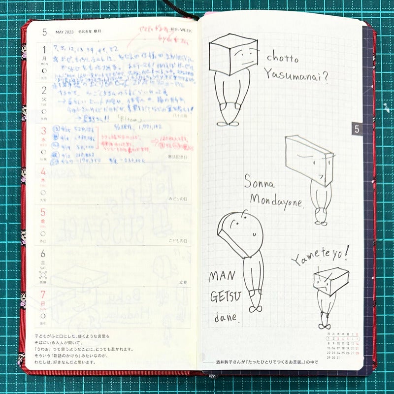 右ページの方眼メモにはラクガキを