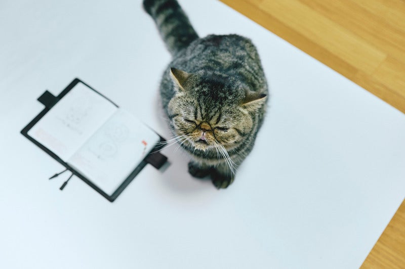 ネコたちは取材のようすを