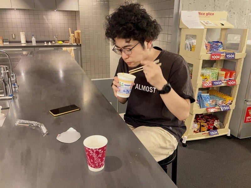 ▼シーフードヌードルを食べる