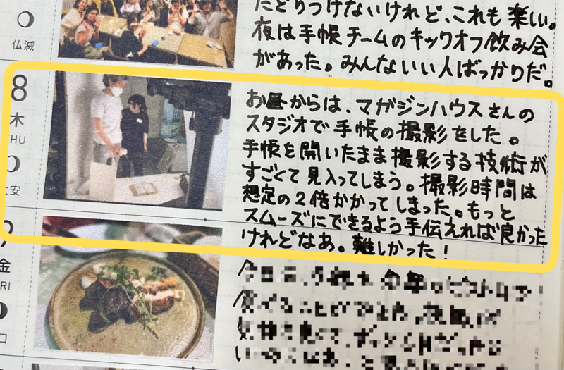 ある手帳の撮影の様子。
