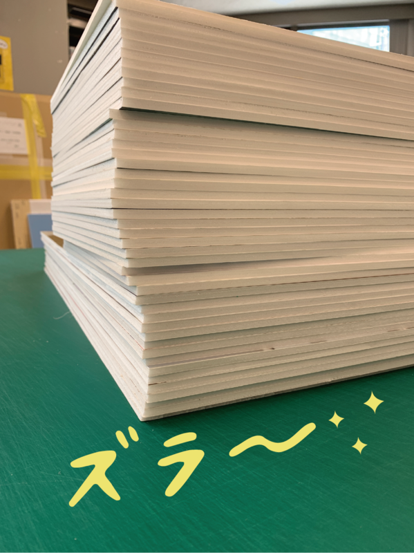 デザイナーさん作成のバック紙の上に、本体をたくさん載せて一発撮り。緊張‥‥!