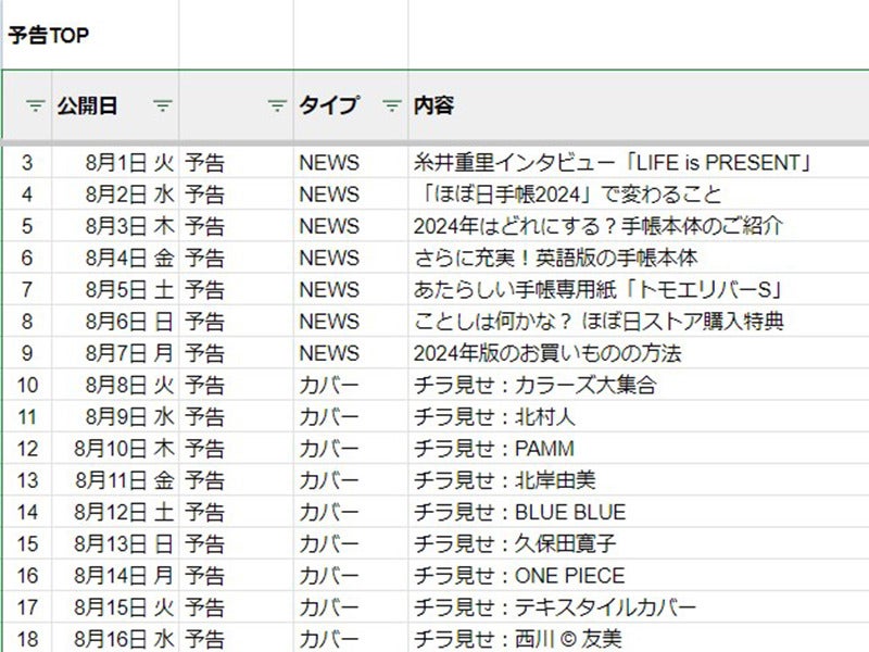 そして、「ほぼ日手帳ニュース」では、