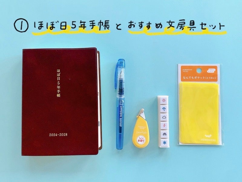 (1)の「ほぼ日5年手帳とおすすめ文房具セット」は、