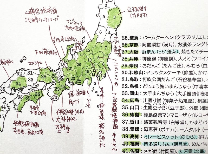 行った県とたべたおみやげに色をつけて、印象に残った場所をメモメモ。来年は東北と中国・四国地方に行かねばっ!嬉