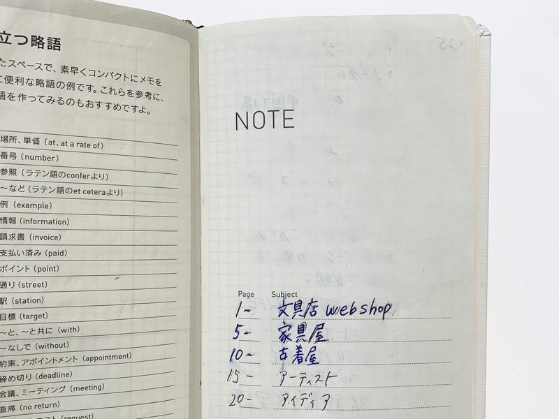 NOTEは、始めのページで目次を作成できるので