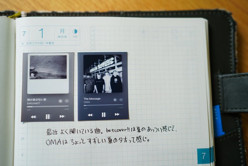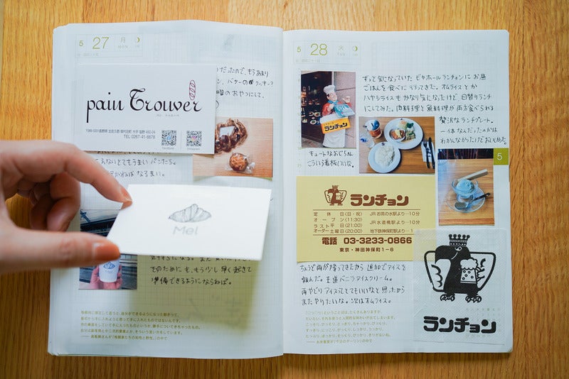 手帳に書いたり貼ったりしています。