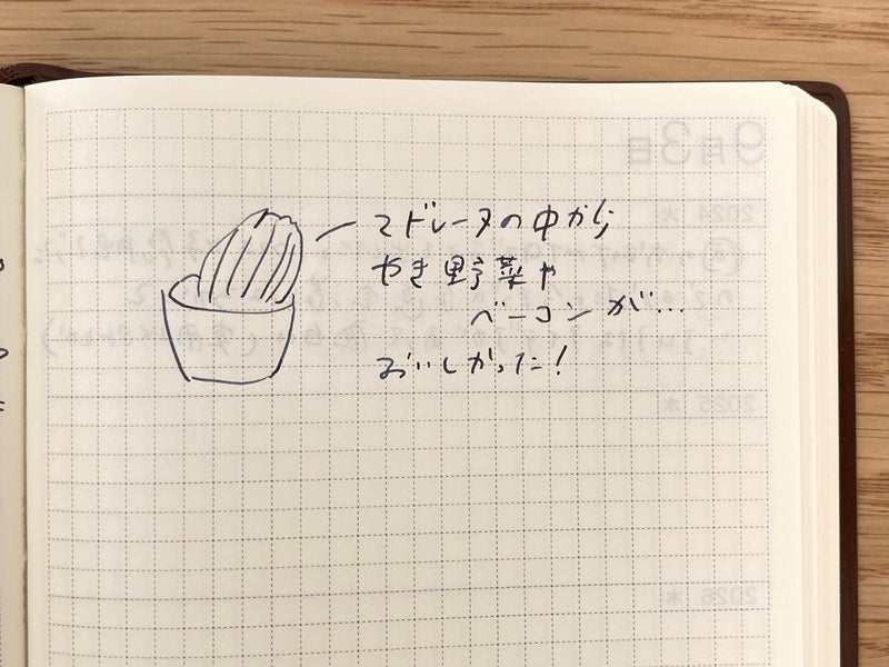 左の日付ページに収まらなかった日記の続きを書くか、