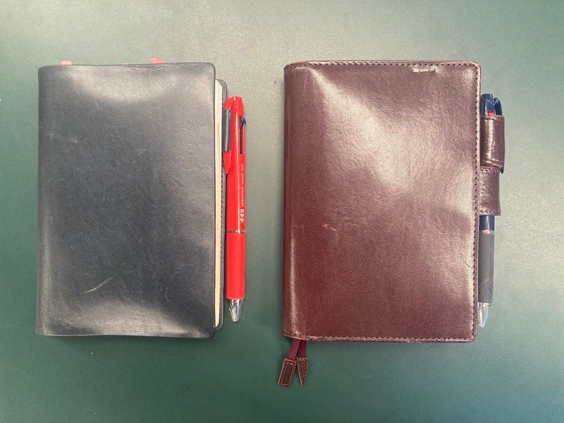 The cover I used in 2020 was Taut, a leather cover that fits snugly around the Hobonichi Techo (pictured on the left). For this year, I chose Dark Cherry, which is a leather cover that has a deep color reminiscent of real dark cherries (pictured on the right).
