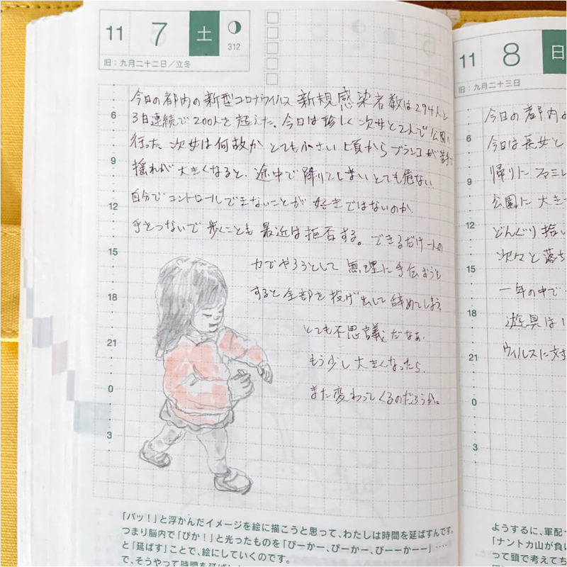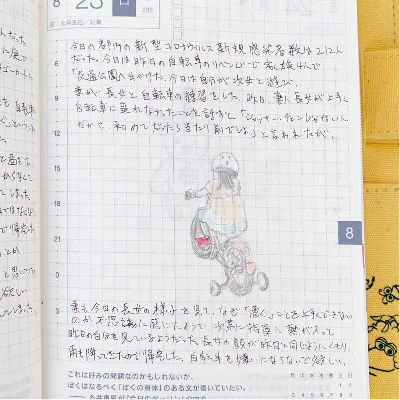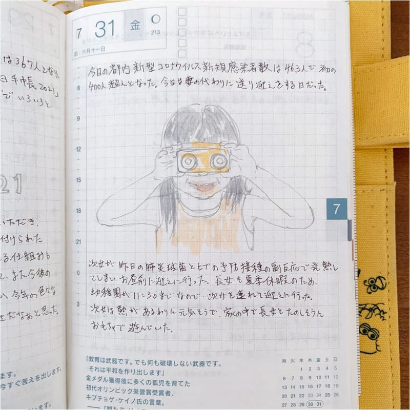 He started to write a diary last April because of the spread of the coronavirus (he started off with the April-start techo), and has continued since. At the beginning of 2021, he switched to the Sunny Days cover.