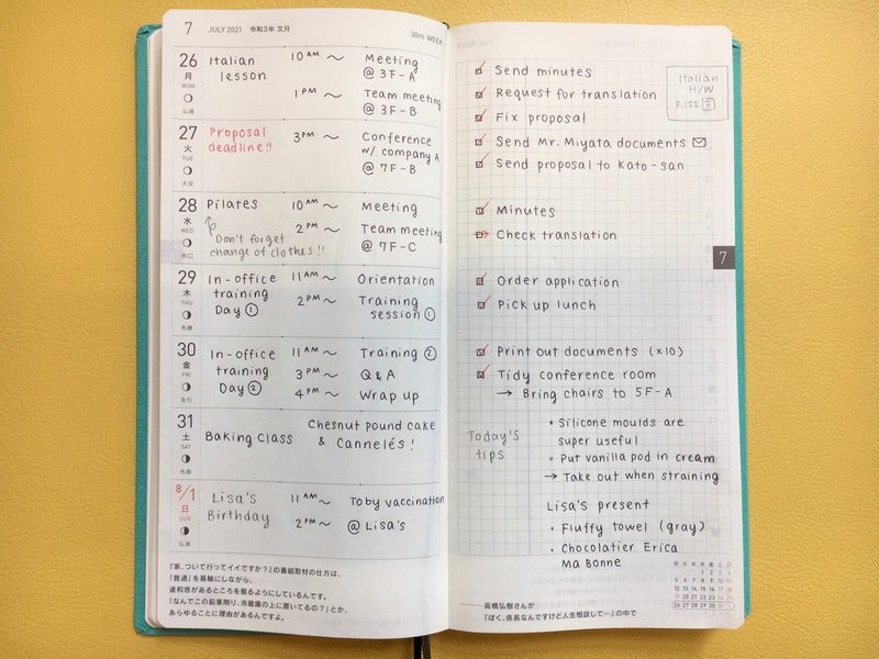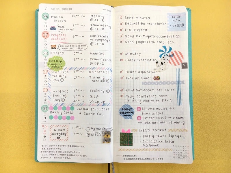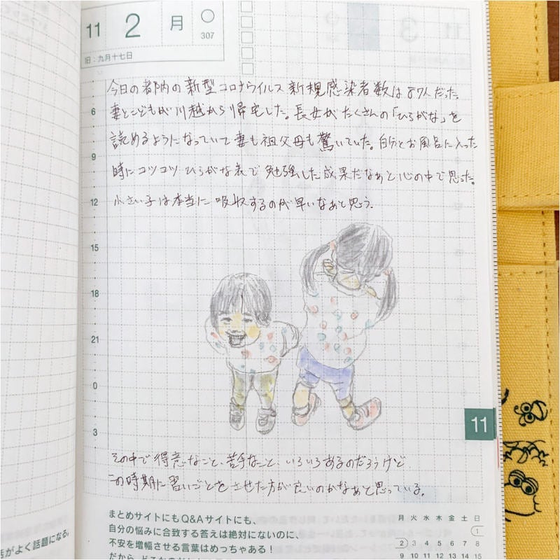 If you want to read about someone who has been writing in their techo for a while for inspiration, therefs an interview with illustrator Sayaka Yokomine, who has been uploading illustrations from her Hobonichi Techo that chronicle her life with her two children. Todayfs upload is about how she feels that shefs a manager of her family, and how her techo is like a secretary for the whole family!