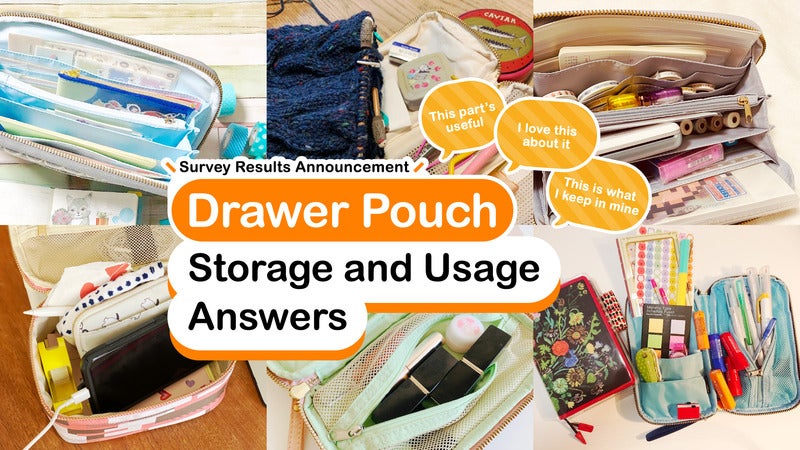 First up is an article that introduces you to the results of a Drawer Pouch Survey we did, alongside usage examples with photos that we received through the survey! Itfs interesting to read what types of pouches everyone has been using, as well as knowing the top 5 items that they keep inside each size.