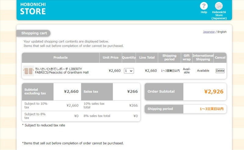 After that, you can proceed like your normal Hobonichi Store purchases! (Please note that some of the texts in the Hobonichi Store page will be written in Japanese)