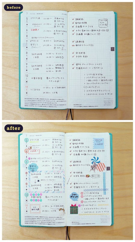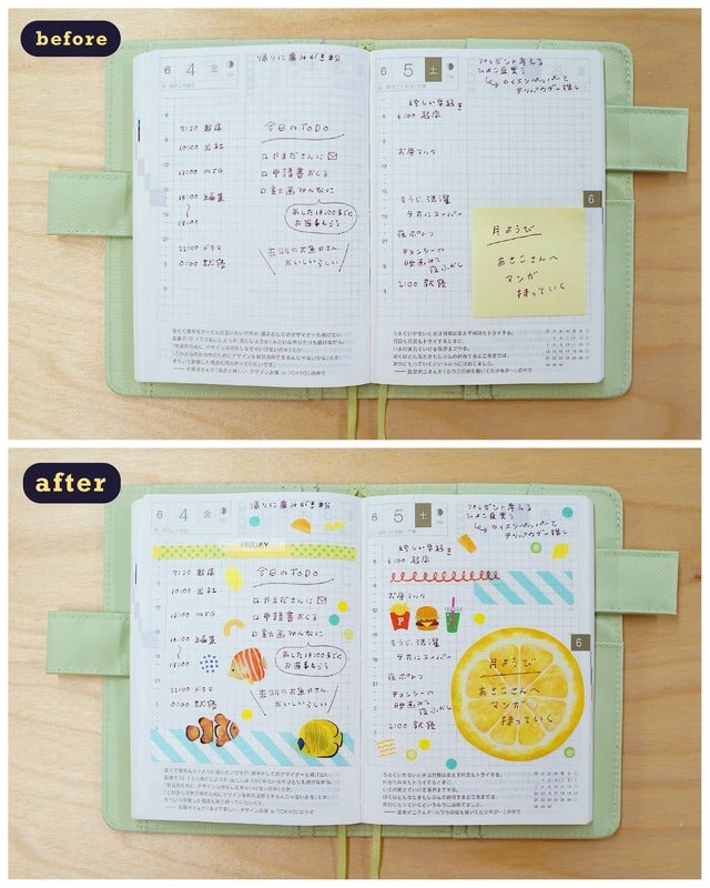 Hi everyone! Have you checked out the latest Stationery Club article? This time, stationery club members Komata, Annen and Ogawa turned simple-looking techo spreads into a more colorful one by using stickers. Stickers are such an easy way to change up the look of your techo without having to draw. (Therefs also something therapeutic about sticking on stickers too...)
