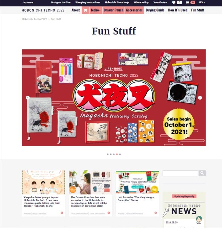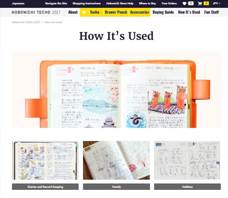 Hi everyone, this is Asako. The Hobonichi Techo website that youfre now on has a page called gFun Stuff.h Here, youfll be able to read articles that take a closer look at products, how people use the techo, and other content that lets you fully enjoy your techo. Think of it as our online magazine.
