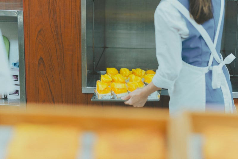 Lots of bread line up on the shelves In the mornings, and neighbors and office workers come to buy bread for breakfast or lunch. Itfs a western sweets shop that has been loved by many over the years and blends into everyonefs daily lives.